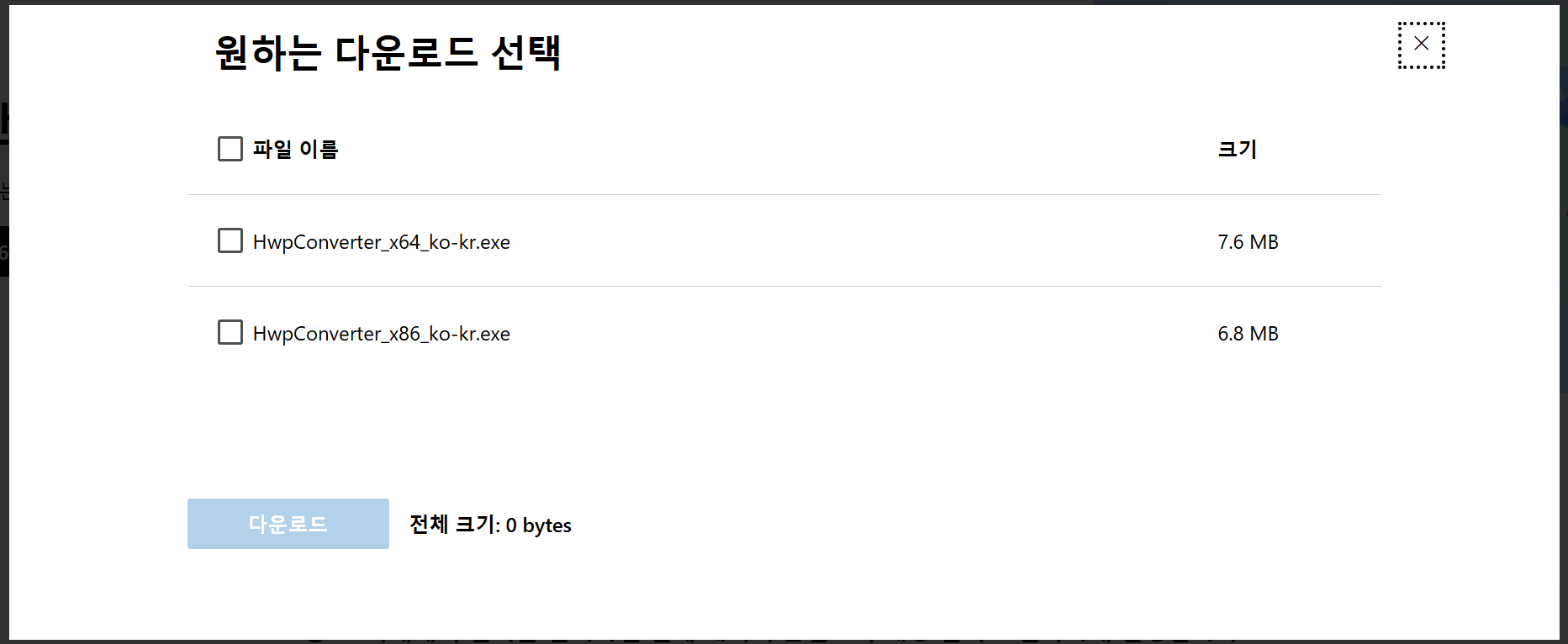 3. ‘다운로드’ 버튼을 클릭해 HwpConverter_x64_ko-kr.exe 파일을 PC에 저장한다.